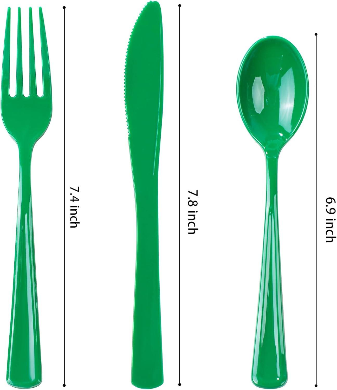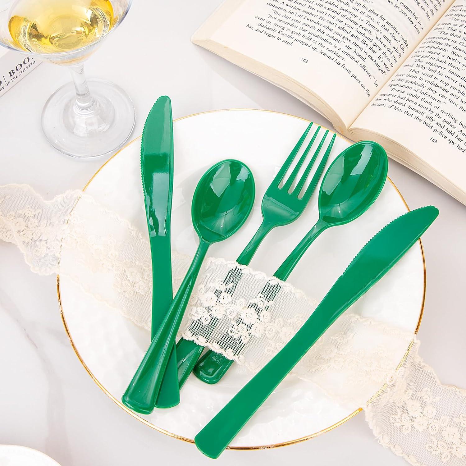 WDF 160 Piece Heavy Duty Silverware - Red Plastic Utensils with 80 Forks, 40 Spoons, 40 Knives - Perfect for Christmas Parties & Daily Use(Green)