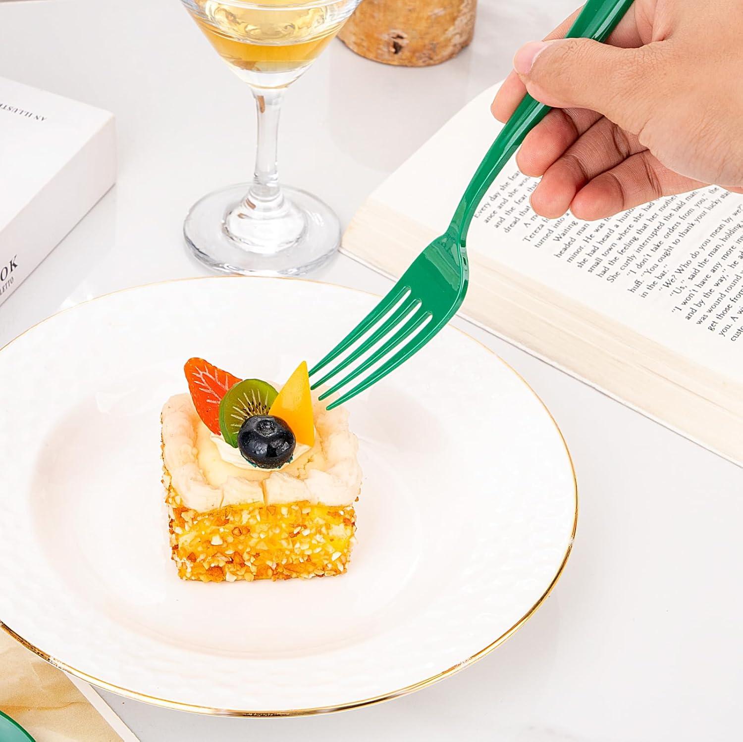 WDF 160 Piece Heavy Duty Silverware – Red Plastic Utensils with 80 Forks, 40 Spoons, 40 Knives – Perfect for Christmas Parties & Daily Use(Green)
